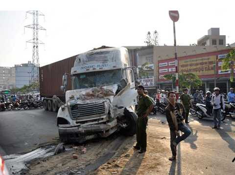 Khoảng 5h20 sáng ngày 23/2, xe container BKS 51C-141.24 kéo theo thùng hàng loại 40 feet lưu thông trên Kinh Dương Vương hướng từ quận 5 về Bình Tân, TP.HCM.