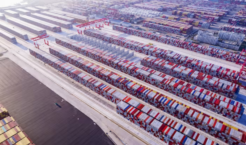 Một cảng hàng hóa ở Thượng Hải hồi tháng 1. (Ảnh: Nikkei Asia)