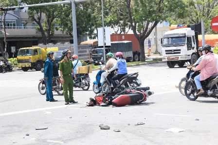 Khi đến giao lộ Nguyễn Lương Bằng – Nguyễn Văn Linh, xe container bất ngờ mất lái đâm vào xe máy BKS 54L7 - 0997 (chưa rõ danh tính tài xế), chiếc xe container tiếp tục húc văng xe ô tô BKS 51A – 17065.