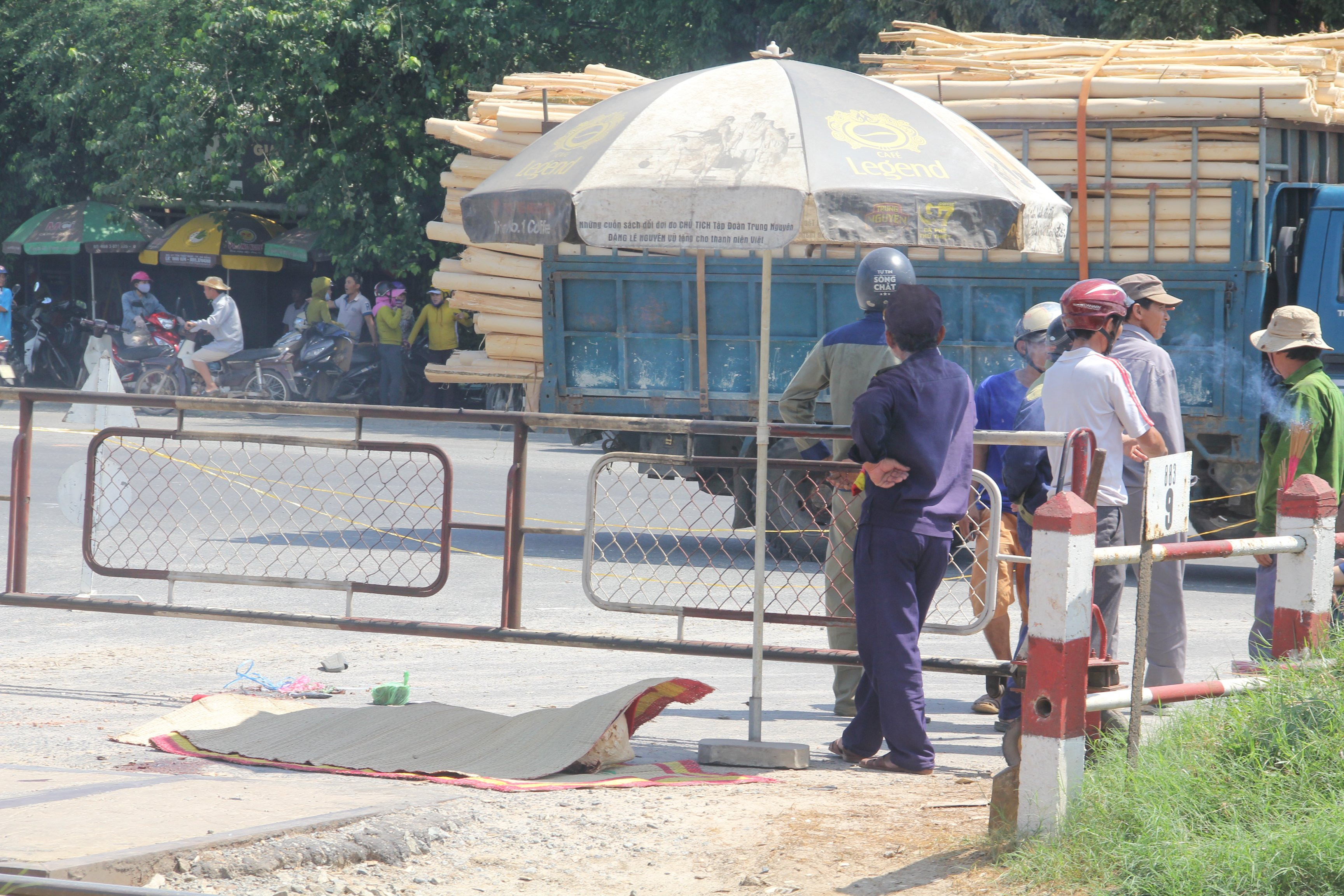 Trong lúc rẽ qua khúc cua dẫn vào khu công nghiệp Chu Lai, xe container tông một phụ nữ đi xe đạp thiệt mạng. (Ảnh: B.Đ)