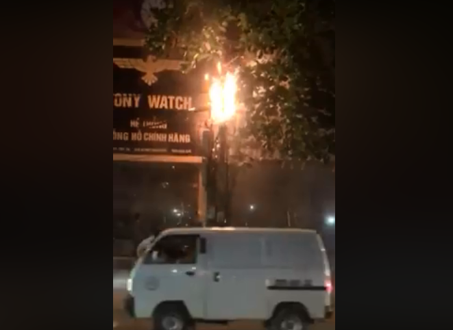 Video: Cột điện phát nổ, cháy dữ dội khiến nhiều người dân hoảng loạn (Nguồn: Facebook)