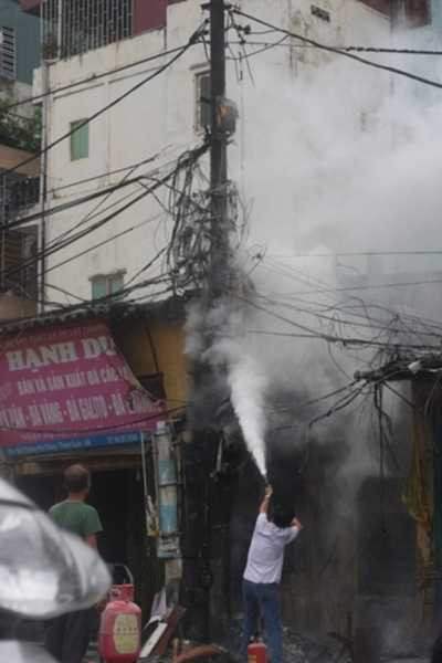 "Cột điện bốc cháy và cháy lan sang nhà số 2, đám cháy mới đầu không to nhưng có gió mạnh nên ngọn lửa càng bốc cháy dữ dội. Rất may khi sự việc xảy ra không gây thương vong", một người dân quanh khu dân cư nói.Nhiều người dân trong khu vực sợ hãi chạy toán loạn. Người qua đường đã nhanh chóng thông báo cho cơ quan điện lực và công an phường Kim Giang đến kịp thời dập tắt đám cháy.Anh Phạm Trọng Thức, một người dân quanh khu vực cho biết, đã nhiều lần xảy ra vụ cháy cột điện ở đây và báo cho cơ quan chức năng xử lý nhưng sự việc vẫn tái diễn.Đám cháy đã phá hủy toàn bộ hệ thống điện trên cột. Nhiều hộ dân bị ảnh hưởng, mất điện sau vụ cháy.