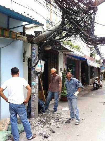 Theo anh Quyết, trụ điện gãy ngang đổ xuống đã kéo theo tiếng xẹt lửa khiến nhiều người dân ngụ tại hẻm hoảng loạn bỏ chạy. Rất may sự cố xảy ra không có thương vong về người.