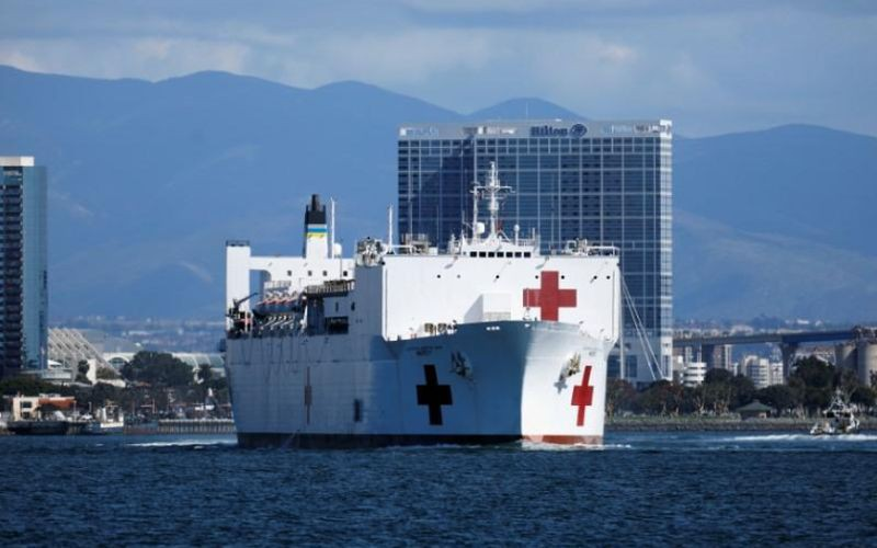 Tàu bệnh viện Hải quân USNS Mercy được triển khai để hỗ trợ việc điều trị các bệnh nhân mắc Covid-19. (Ảnh: Reuters)