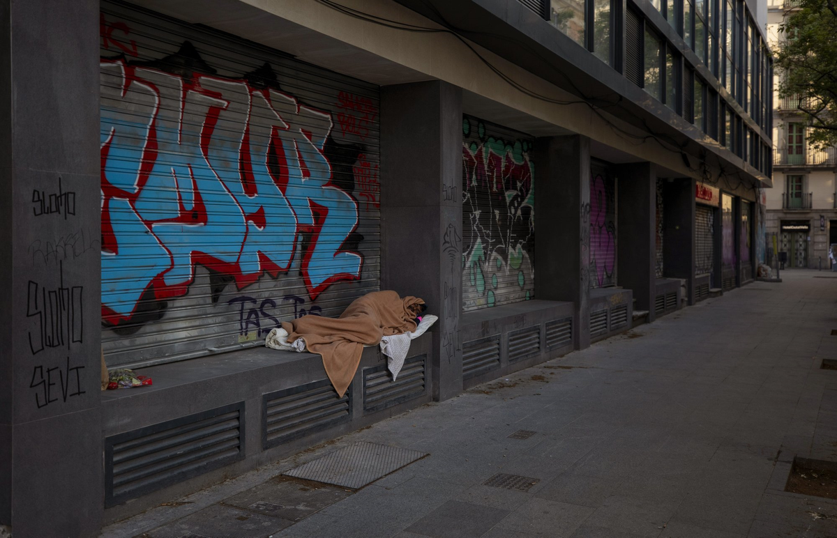 Những người vô gia cư ở Barcelona đều cho rằng, việc kiếm tiền hoặc thức ăn là giờ đây vô nghĩa vì không có ai ở quanh để cho họ bất cứ thứ gì. (Ảnh: AP)