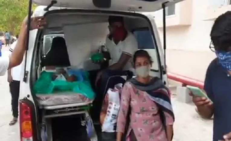 Chiếc xe cấp cứu chở Chandvika đỗ bên ngoài bệnh viện. (Ảnh: NDTV)