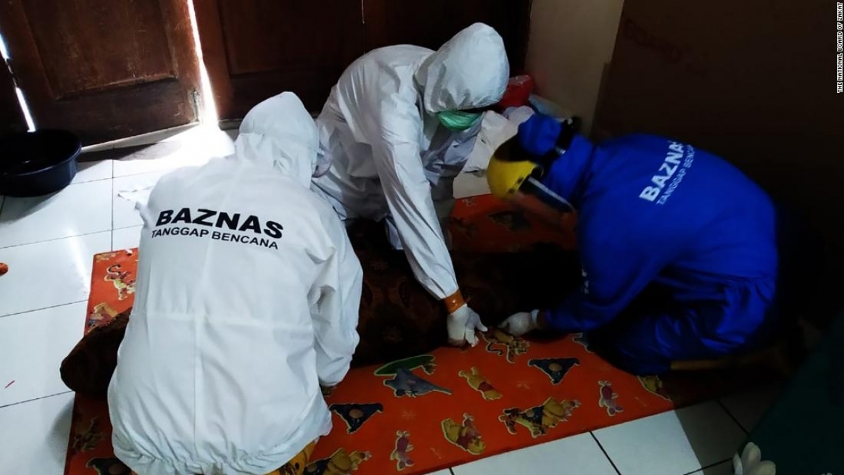 Các tình nguyện viên trong nhóm của Taufiq Hidayat thu thập thi thể những người mắc COVID-19 tử vong tại nhà. (Ảnh: CNN)