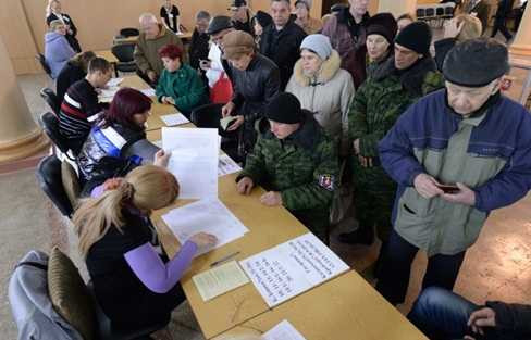 | Người Crưm đến địa điểm bỏ phiếu |