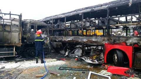 Tại hiện trường, xe khách Phương Trang và xe tải bị cháy rụi hoàn toàn, tài xế xe khách Phương Trang đã chết cùng nhiều nạn nhân khác, số nạn nhân bị nguy kịch đang được cấp cứu cũng khá nhiều.