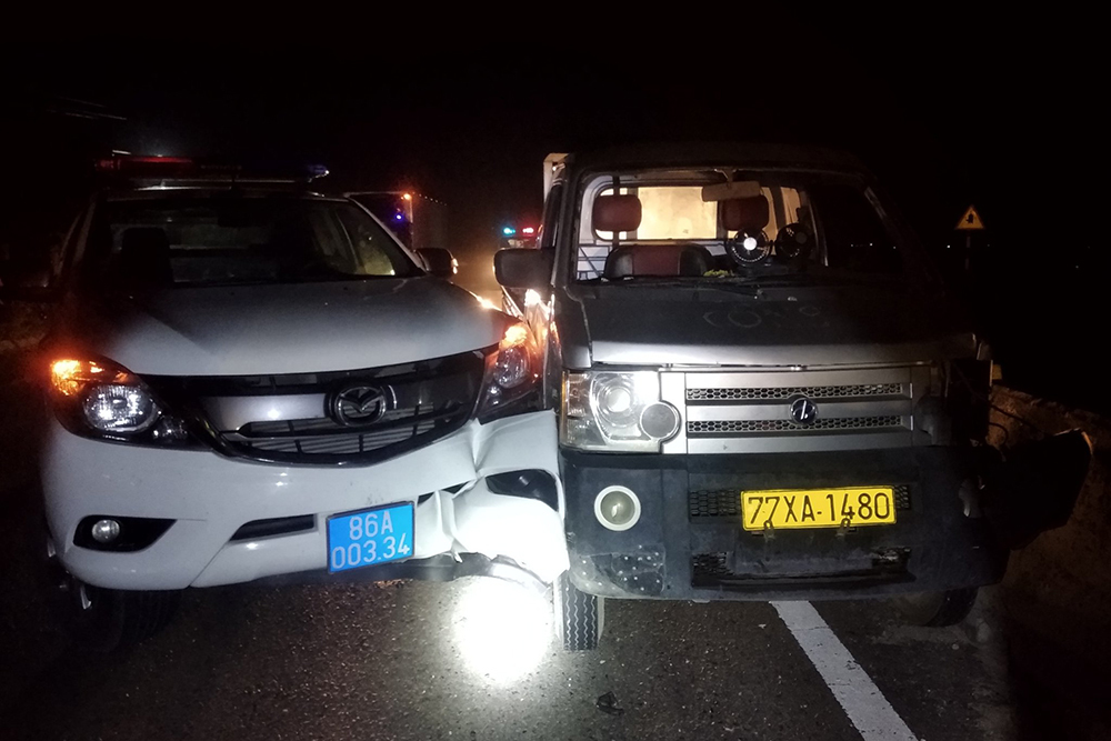 Nguyễn Xuân Thịnh lái xe ô tô 77XA - 1480 lao thẳng vào xe ô tô của tổ công tác.