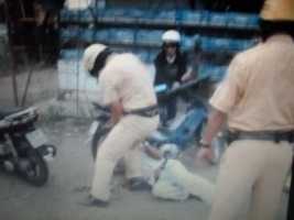 | CSGT TP.HCM khẳng định hành động này của chiến sĩ CSGT Rạch Chiếc là phòng vệ chính đáng trước người say xỉn (ảnh từ clip) |