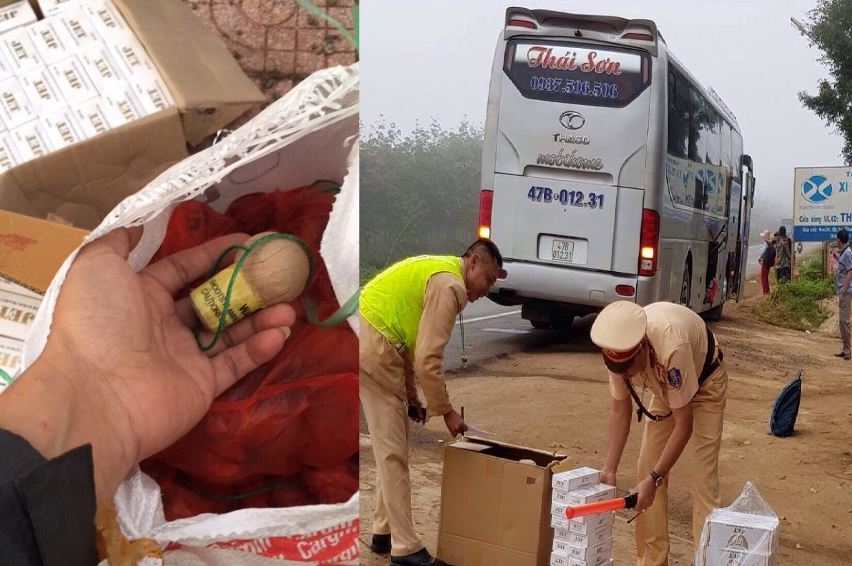 Cùng ngày, tổ tuần tra kiểm soát giao thông (Trạm CSGT Krông Búk) do thượng úy Lê Đình Hòa làm tổ trưởng phát hiện xe khách Thái Sơn mang BKS: 47B -012.23 do tài xế Nguyễn Thanh Vũ (SN 1977, trú TP Buôn Ma Thuột) chạy từ hướng Đà Nẵng - Đắk Lắk vận chuyển 500 gói thuốc Jet.