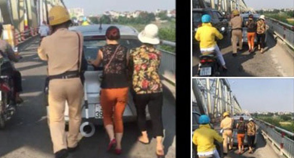 Mới đây, mạng xã hội xôn xao về hình ảnh một chiến sỹ CSGT đang giúp hai người phụ nữ đẩy xe ô tô chết máy ra khỏi khu vực cầu Chương Dương (Hà Nội).