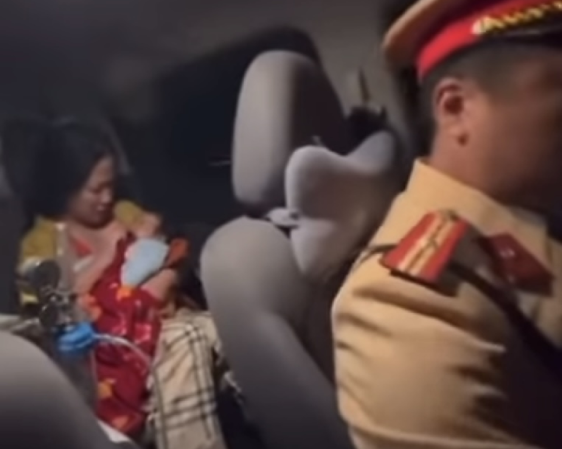 CSGT dùng xe đặc chủng đưa cháu bé suy hô hấp đi cấp cứu