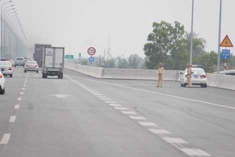 | Lực lượng CSGT làm việc trên đường cao tốc TPHCM - Long Thành - Dầu Giây tại vị trí được cho phép theo kế hoạch |
