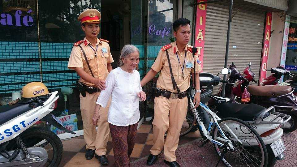 Thấy cụ già sắp ngã, hai Trung uý CSGT nhanh chóng tới đỡ cụ. Nhìn thấy trên tay cụ già có gói thịt, phán đoán cụ vừa đi chợ về nên hai chiến sĩ CSGT đưa cụ qua đường và hỏi địa chỉ để đưa cụ về, nhưng đến lúc này cụ già mới thực sự không nhớ nổi địa chỉ và có biểu hiện bị lẫn.