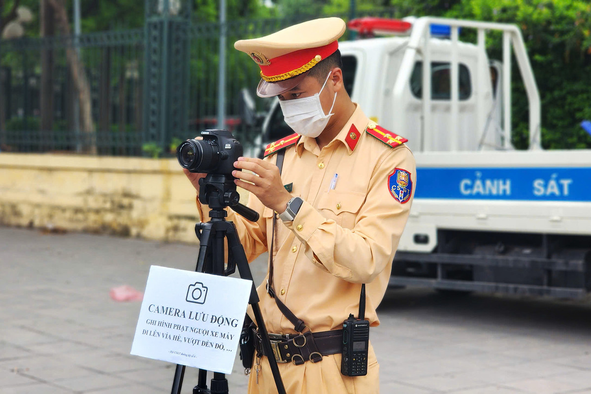 Cảnh sát sử dụng thiết bị ghi hình chuyên dụng được Công an thành phố trang bị nhằm ghi nhận vi phạm. Các thông tin như thời gian, địa điểm, biển kiểm soát phương tiện... sẽ được thể hiện trên hình ảnh vi phạm.