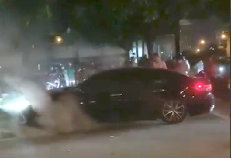 Hiện trường tài xế ô tô tự gây tai nạn. (Ảnh cắt từ clip).