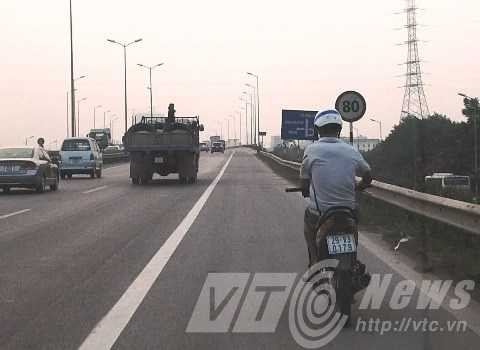 | Xe máy ngang nhiên đi trên đường cao tốc trên cao (Ảnh: Quang Tùng) |