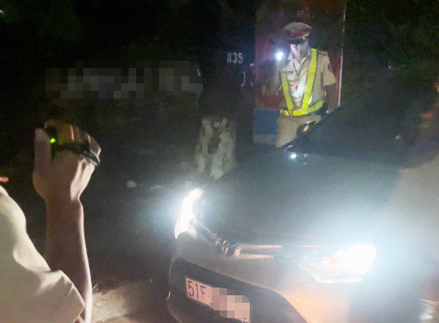 Đến 21h41 cùng ngày, sau khi được vận động, thuyết phục, lái xe đã xuống xe chấp hành kiểm tra nồng độ cồn trong hơi thở. Qua kiểm tra, lái xe là Trần Đức Long (SN 1970, trú tại phường 17, quận Gò Vấp, TP.HCM) với kết quả đo nồng độ cồn là 0,618 mg/l khí thở.