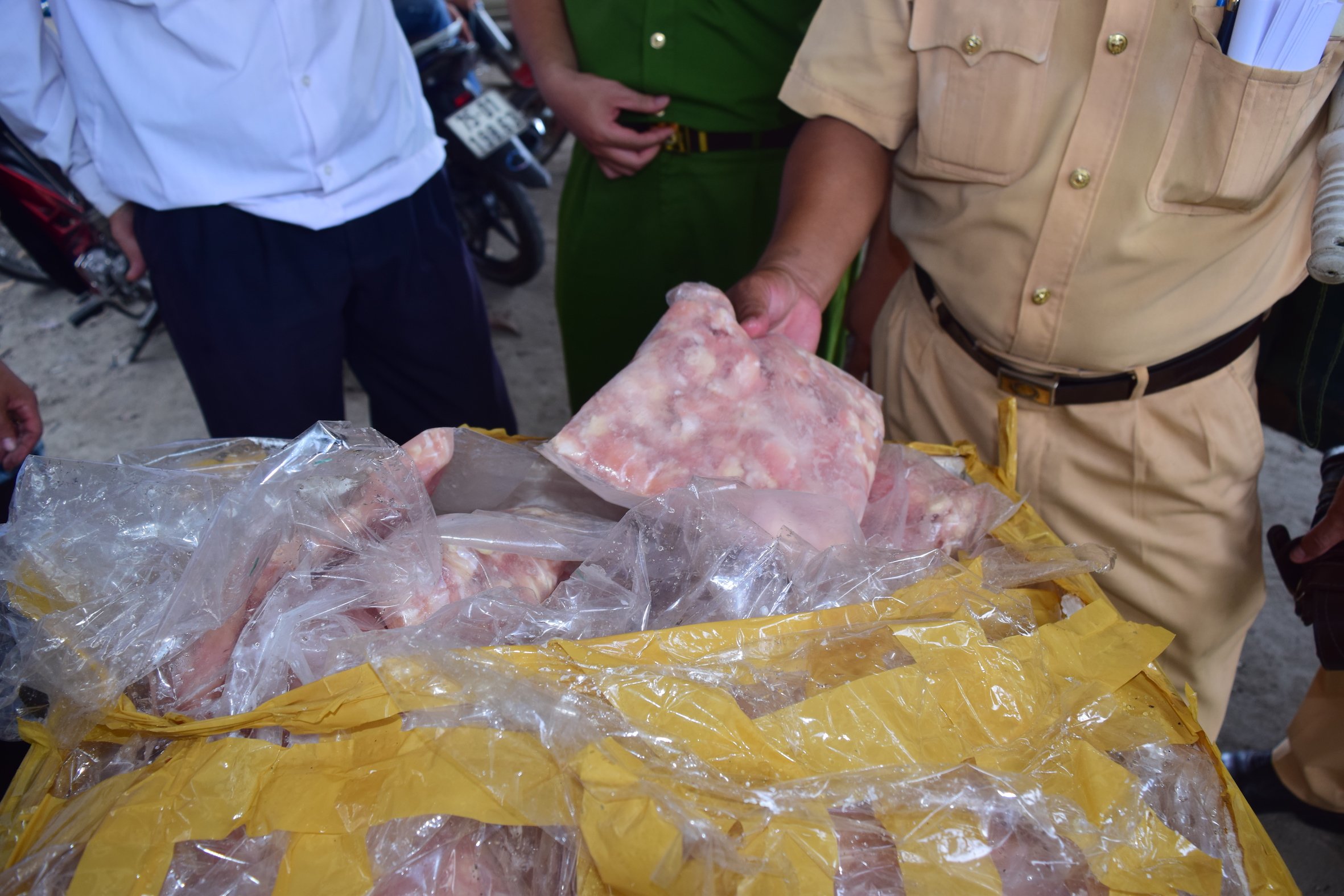 Trong quá trình kiểm tra, lực lượng CSGT phát hiện trên xe chở 12 thùng xốp bên trong chứa 840kg sụn gà không có hóa đơn chứng từ, không có giấy chứng nhận kiểm dịch an toàn thực phẩm, không có nguồn gốc xuất xứ được ghi trên bao bì.