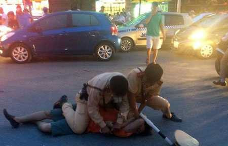 | CSGT vật lộn với tài xế say xỉn (Ảnh: Zing) |