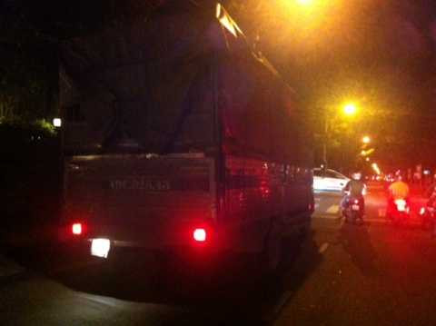 | Xe tải nặng vô tư đi vào giờ cấm vào lúc 22h50 tối 18/8 trên đường Võ Thị Sáu, Q.3 (ảnh: P.V) |