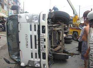 Đến chân cầu Bình Triệu 1 (hướng ngược lại từ ngã tư Hàng Xanh về Thủ Đức), một CSGT đã cầm lái. Đến khi đổ dốc thì chiếc xe loạng choạng rồi lật nhào ngang đường.