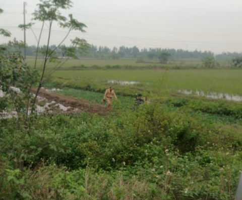 | Bất chấp giá rét, CSGT lội ruộng để khống chế các đối tượng nghi vấn phạm tội. |