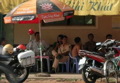Ngày 8/12, người đi đường trên tuyến quốc lộ 1A đoạn qua xã An Hiệp (Châu Thành, Sóc Trăng) bức xúc khi thấy hai người mặc quân phục cảnh sát “đóng chốt” làm nhiệm vụ trong quán cà phê Anh Đào gần chợ An Trạch của xã An Hiệp.