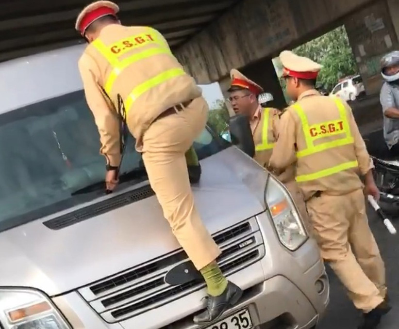 Video: CSGT Bắc Ninh nhảy lên xe túm gạt nước để yêu cầu tài xế dừng xe.