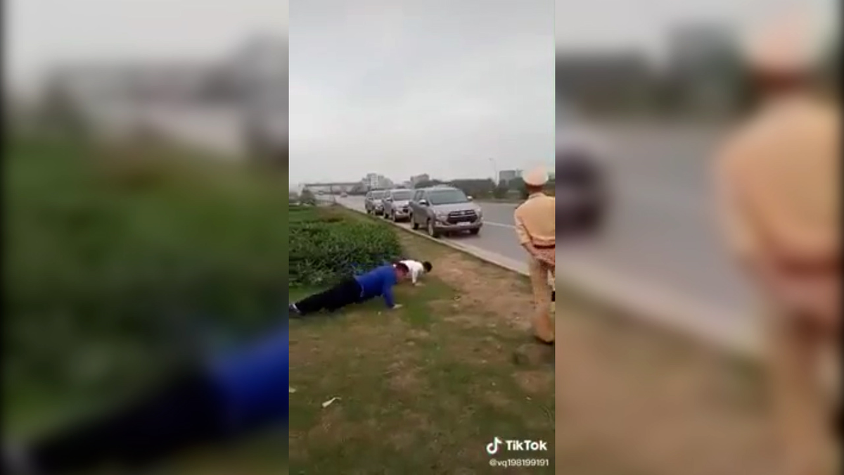CSGT phạt tài xế chống đẩy giữa đường vì không đeo khẩu trang phòng Covid-19