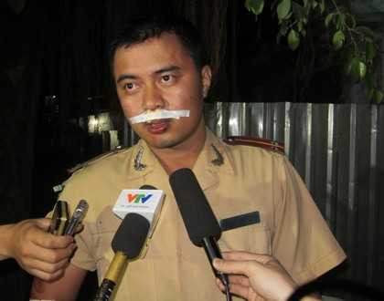 Trung úy CSGT Nguyễn Ngọc Hà – Đội CSGT Rạch Chiếc với những vết thương trên cơ thể sau quá trình truy đuổi hai nghi can cướp giật (Ảnh: N.D)