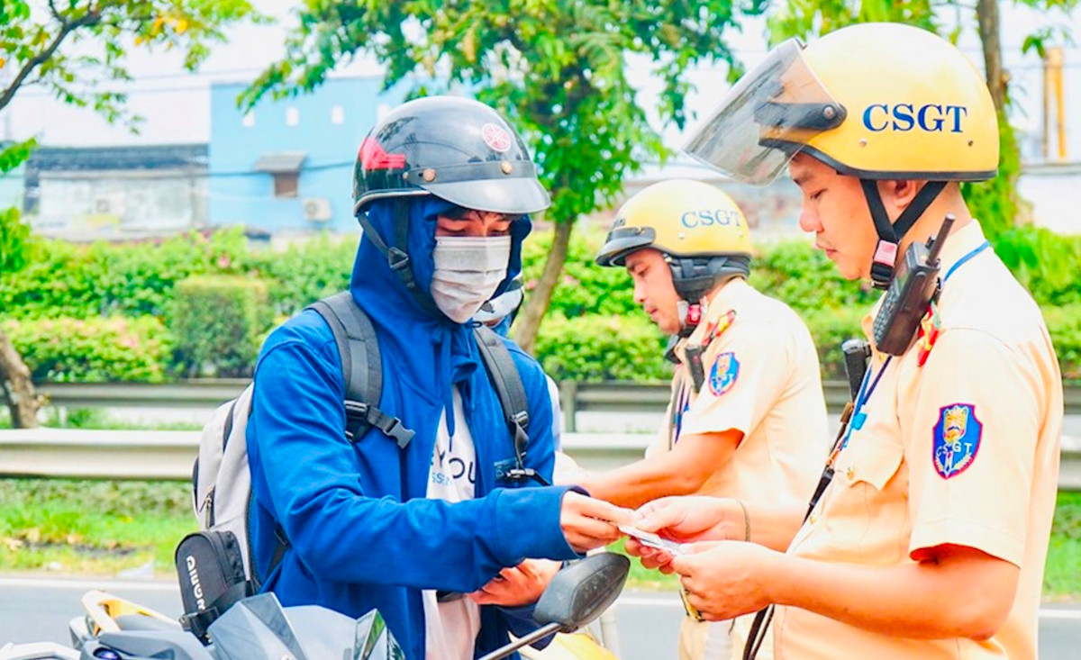 CSGT TP.HCM kiểm tra giấy tờ người tham gia giao thông.