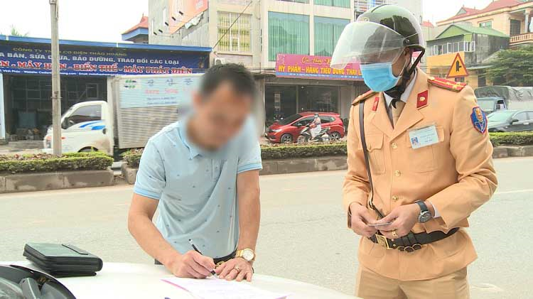 Lực lượng CSGT tỉnh Vĩnh Phúc ra quân xử phạt người vi phạm bằng hình thức ghi hình, dán giấy thông báo vi phạm.