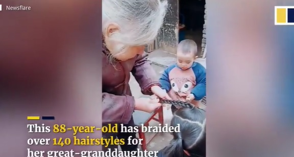 Theo chia sẻ, cụ bà 88 tuổi đã tết hơn 140 kiểu tóc cho chắt của mình. Cụ tâm sự, cụ lo cô bé Yue Yue cảm thấy nóng bức vào mùa hè nên hàng ngày cụ thường tết tóc cho chắt. Hành động đong đầy yêu thương được cụ bà làm từ năm 2019.