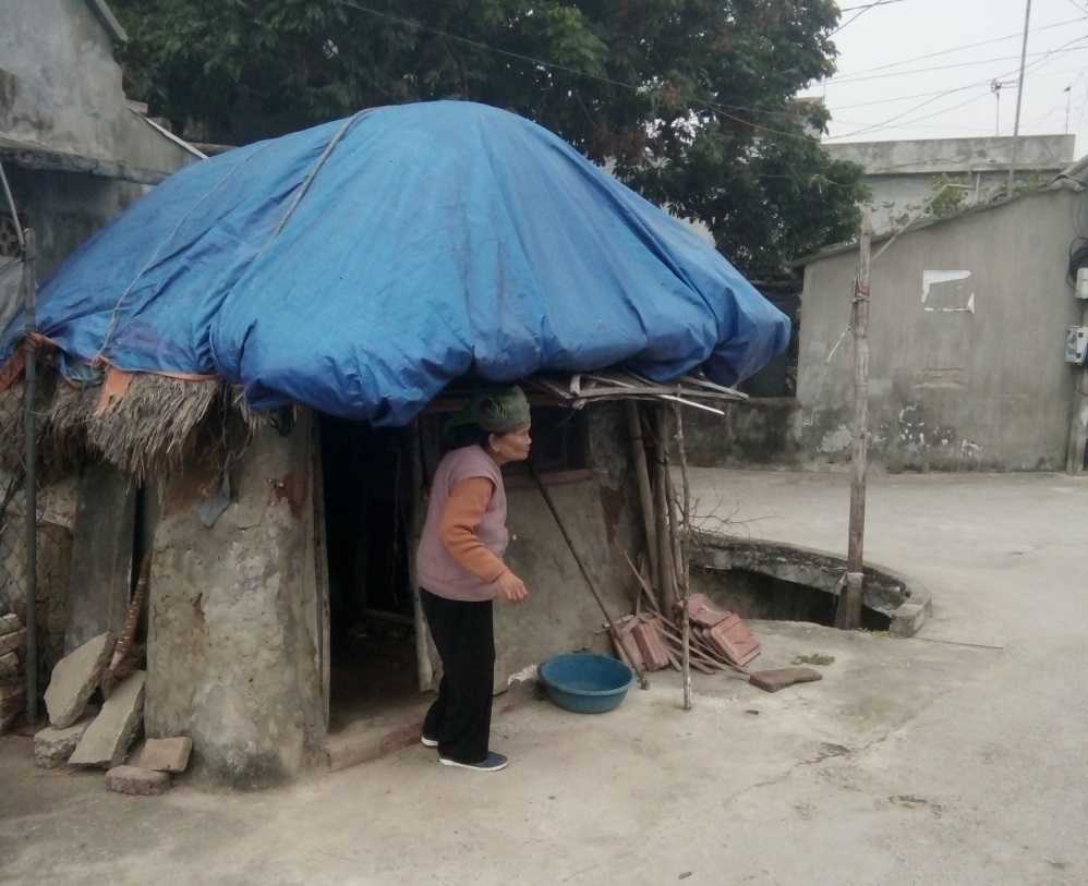 Đứng ở cửa một ngôi nhà đất chỉ cao quá đầu người, cụ bà tóc bạc đang lụ khụ chống gậy bước ra. Không quan tâm đến người lạ đang loay hoay ghi hình ngôi nhà "độc đáo" của mình, bà cụ tiếp tục chống gậy bước về phía cây cầu Đất.