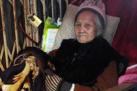 | Cụ Nguyễn Thị Cúc 95 tuổi có lẽ sẽ phải ăn Tết ở ngoài vỉa hè nhà mình |