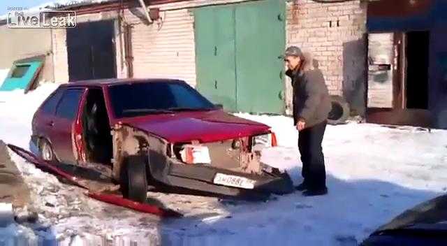 Cú đá 'hiểm hóc', ôtô lập tức nát bét