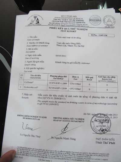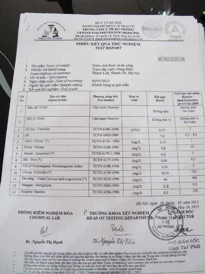 Tuy nhiên, theo tài liệu do chính ông Hanh cung cấp thì phần lớn các mẫu nước xét nghiệm của Trạm cấp nước Đông Hiếu đã được thực hiện từ cách đây 1 năm, nên vẫn khiến người dân không khỏi lo lắng về chất lượng nguồn nước này. Về việc này, ông Hanh cho biết, BQL sẵn sàng cùng với bà con cư dân và đại diện cơ quan báo chí mở vòi từ đầu nguồn để lấy mẫu nước đem đi phân tích các chỉ tiêu, kết quả cụ thể.