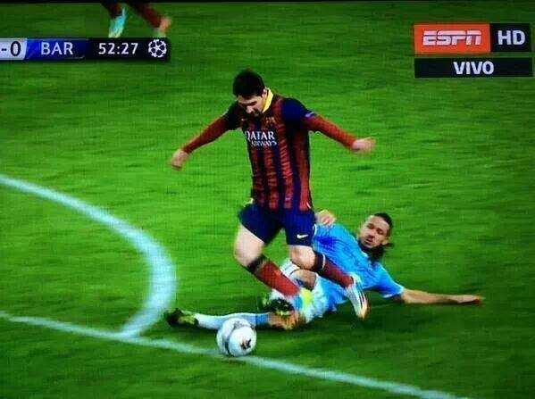 Trong trận đấu giữa Man City và Barcelona vào tối qua, thế trận giằng co giữa hai đội diễn ra suốt cả hiệp một. Và có cảm tưởng rằng, phần thắng sẽ nghiêng về đội ghi bàn thắng trước. Barcelona đã làm được điều đó sau bước ngoặt của trận đấu đến từ tình huống phạm lỗi của Demichelis với Messi ở phút thứ 53. Đội bóng Tây Ban Nha được hưởng phạt đền còn trung vệ Demichelis phải nhận thẻ đỏ rời sân.