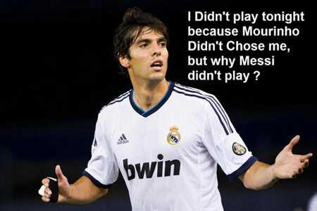 "Tôi không thể thi đấu vì Mourinho không chọn tôi, nhưng tại sao Messi lại được ra sân?", ngụ ý Kaka đang có phong độ tốt nhưng không được thi đấu, còn Messi thì ngược lại. |
