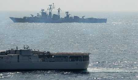 Chiến hạm Nga neo tại vịnh Cam Ranh. Ảnh: Tiếng nói nước Nga