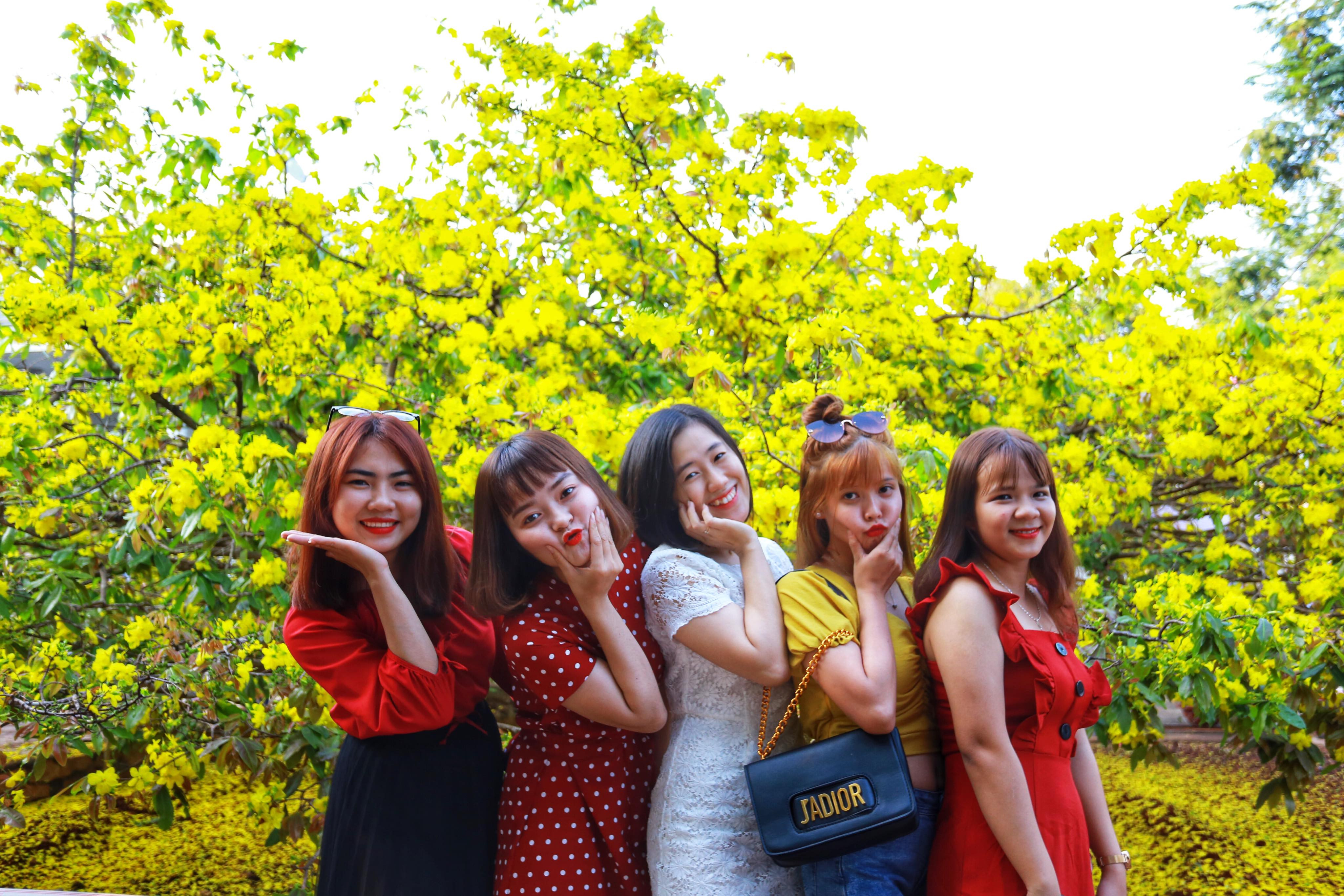 Đôi bạn trẻ lưu giữ sắc đỏ ngày đầu xuân bên sắc vàng của "cụ mai".