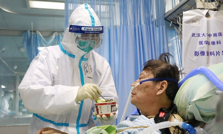Y tá mặc đồ bảo hộ chăm sóc một bệnh nhân nhiễm nCoV tại Bệnh viện Trung Nam Đại học Vũ Hán ngày 8/2 (Ảnh: Reuters)