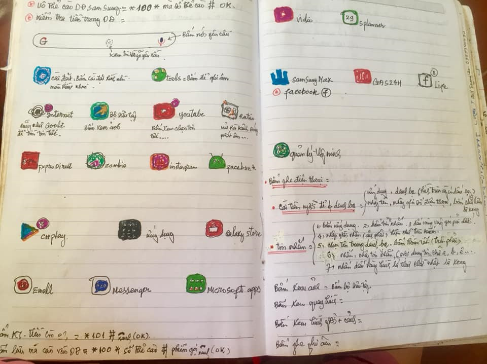Mới đây, trên một diễn đàn trẻ, hình ảnh cuốn sổ ghi chép cách sử dụng điện thoại di động của một cụ ông được cháu gái đăng tải thu hút sự chú ý của dân mạng.