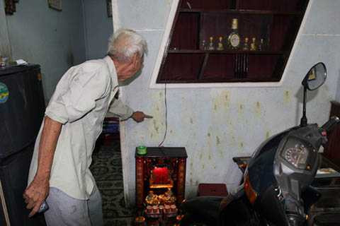 Ông Trần Quang Nghinh (81 tuổi) chủ căn nhà cho biết đã đóng chặt cửa sống với mùi thối, tanh hôi của phân pha mắm tôm, nhớt hơn nửa tháng nay. Ông rất ít giao tiếp với bên ngoài, ai muốn gặp phải gọi điện thoại trước hoặc nói với vào trong, nếu nhận ra người quen ông mới mở cửa.
