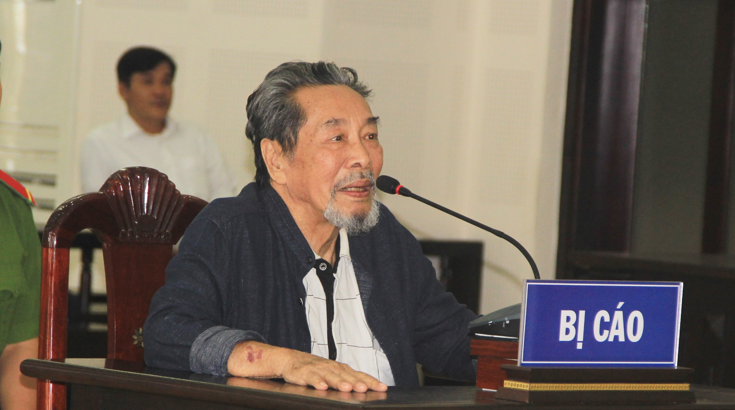 Bị cáo Đặng Huy Biền được tòa cho phép ngồi vì tuổi cao, sức yếu.