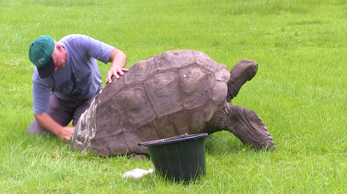 Video: 'Cụ rùa' Jonathan được tắm lần đầu tiên sau gần 2 thế kỷ