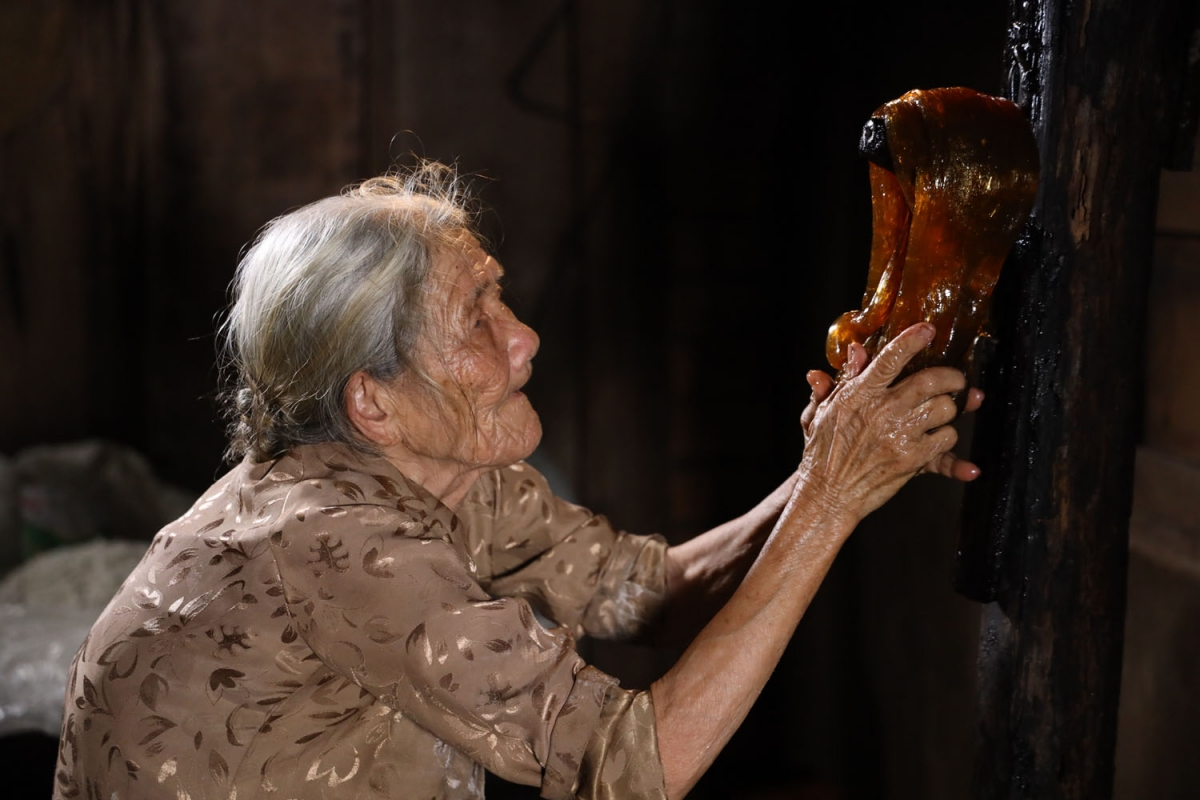 Thời gian dường như ngưng lại bên mâm kẹo ú thơm ngọt được cụ gìn giữ suốt bao lâu. Được chứng kiến những hình ảnh chân thật như vậy ta mới nhìn thấu được cái tâm của người làm nghề, đặc biệt là người nghề thủ công như cụ Tèo.